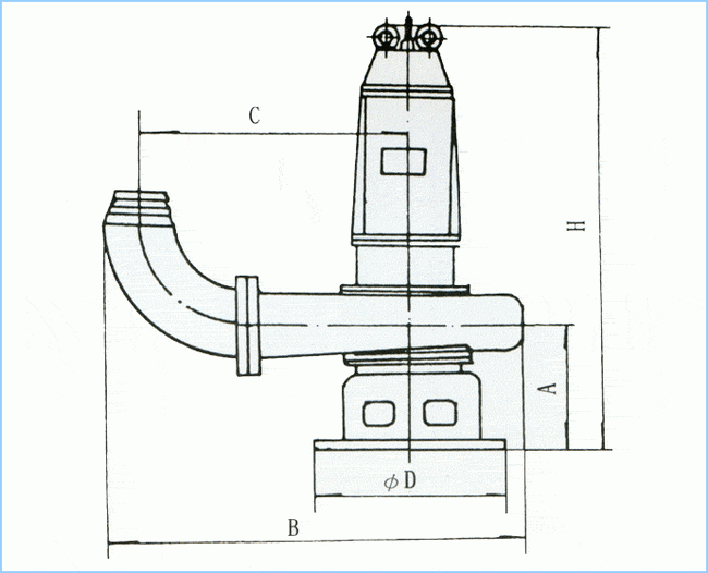 WQ型無堵塞潛水排污泵外形安裝尺寸圖: |