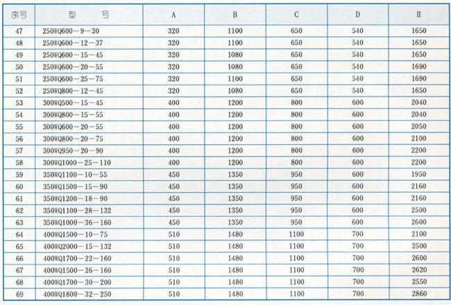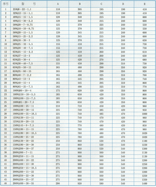 QW型無堵塞潛水排污泵外形安裝尺寸表: |