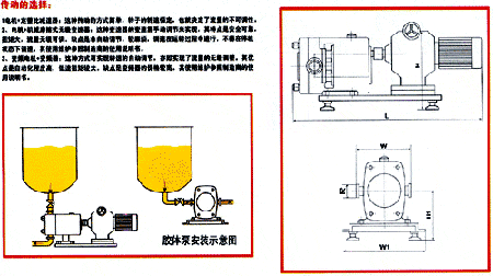 由于該泵不附帶電機、調(diào)整裝置和基礎(chǔ)板等其它配件,故在安裝本泵時,希參照下圖(安裝示意圖)及前面的技術(shù)參數(shù)表中的電機功率和最高限速,選用合適的電機(最好選用調(diào)速電機)型號和一副彈性聯(lián)軸器,并按照本泵及所選電機的中心高、配制一塊不銹鋼的基礎(chǔ)板。