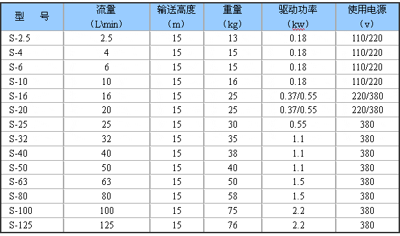 二、S型齒輪油泵性能參數(shù)表: