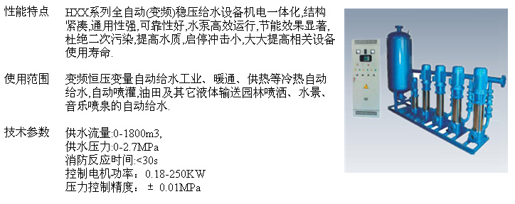 TAG標(biāo)簽: HXX系列全自動(dòng)(變頻)穩(wěn)壓給水設(shè)備 HXX系列全自動(dòng)(變頻)穩(wěn)壓給水設(shè)備更多信息 產(chǎn)品相關(guān)關(guān)鍵字: 機(jī)動(dòng) 同類產(chǎn)品 SBLW-X全自動(dòng)箱式無負(fù)壓 SBLW全自動(dòng)無負(fù)壓穩(wěn)流給水設(shè)備 SBLW-X全自動(dòng)箱式無負(fù)... SBLW全自動(dòng)無負(fù)壓穩(wěn)流給 SBLW全自動(dòng)無負(fù)壓穩(wěn)流給水設(shè)備 SBLW全自動(dòng)無負(fù)壓穩(wěn)流... SYWG-SJ內(nèi)置水泵管網(wǎng)疊壓 SYWG-SJ內(nèi)置水泵管網(wǎng)疊壓供水設(shè)備 SYWG-SJ內(nèi)置水泵管...