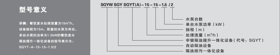 SGYT-A隔油提升一體化設(shè)備,由格柵除污區(qū)、油水分離區(qū)、集油排污區(qū)、集泥排污區(qū)、污水提升區(qū)及排渣、排油、排泥裝置、污水排放、控制系統(tǒng)等組成。