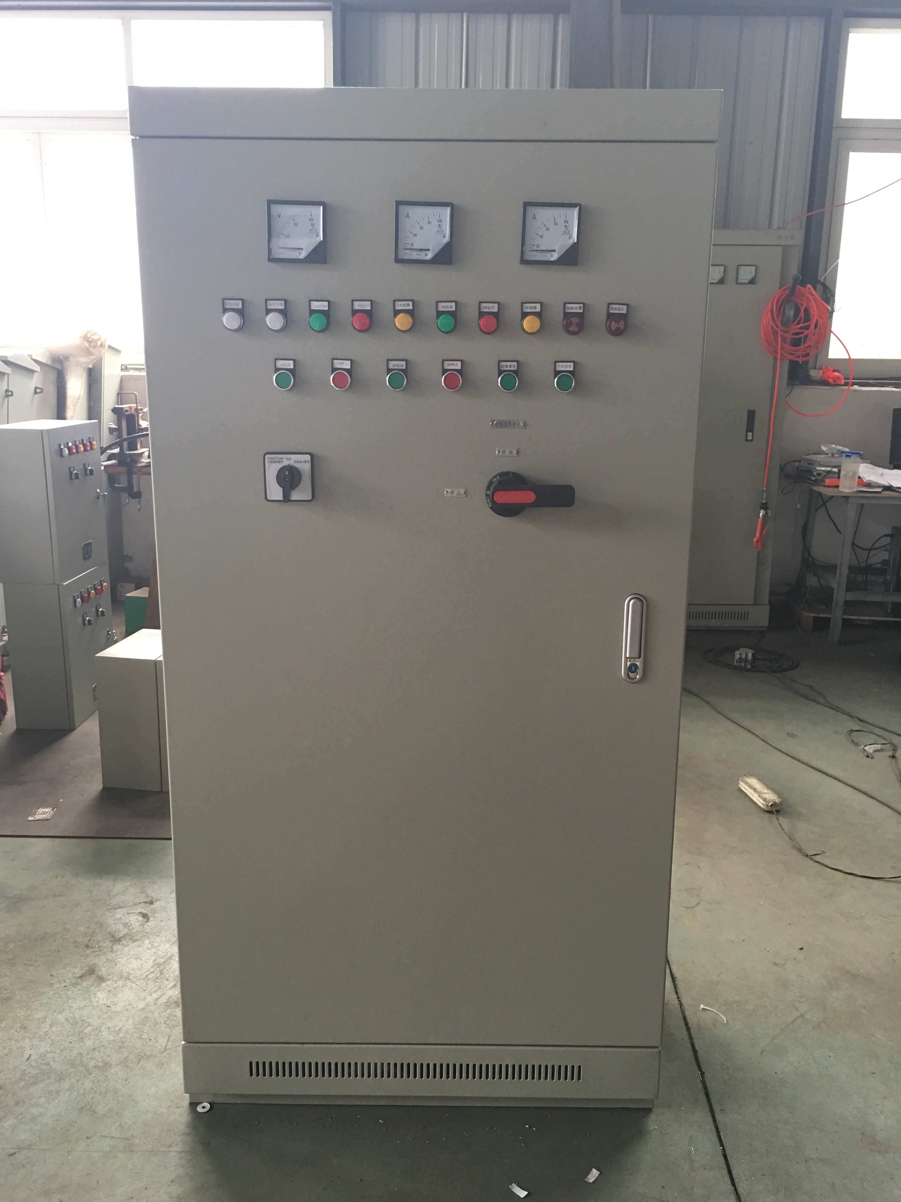 配備了該機(jī)械應(yīng)急啟動(dòng)裝置的消防水泵控制柜,在面板上比之前的消防水泵控制柜多出一套手柄�,F(xiàn)場(chǎng)的工作人員可以在發(fā)生火災(zāi)的時(shí)候,通過(guò)選擇該手柄,帶動(dòng)內(nèi)部的操作機(jī)構(gòu),強(qiáng)制啟動(dòng)水泵。