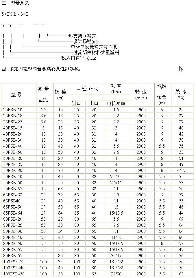 FSB型氟塑料合金離心泵按國際標準設(shè)計,泵體采用金屬外殼內(nèi)襯聚全氟乙丙烯(F46),