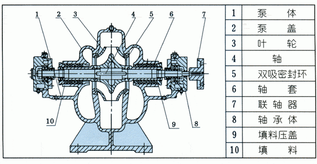 三、S、SH型單級雙吸泵結(jié)構(gòu)原理圖: