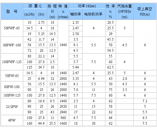 2、PWF型耐腐蝕污水泵可輸送帶有酸性、堿性或其他腐蝕性的污水,廣泛應(yīng)用于化工、石油、輕工、食品、制藥、釀造、環(huán)保及污水處理等行業(yè)。泵體及過(guò)流部件采用304不銹鋼材質(zhì)制造,介質(zhì)溫度不高于100℃。