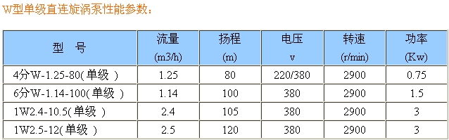 W型單級(jí)直連旋渦泵是供吸送清水和物理化學(xué)性質(zhì)類(lèi)似于水的液體之用,使用液溫不得超過(guò)80℃,常用于鍋爐給水配套,在造船、輕紡、化工、冶金、機(jī)械制造、水產(chǎn)養(yǎng)殖、固定消防穩(wěn)壓:熱交換機(jī)組、農(nóng)業(yè)遠(yuǎn)程噴灌等部門(mén)都有廣泛應(yīng)用。